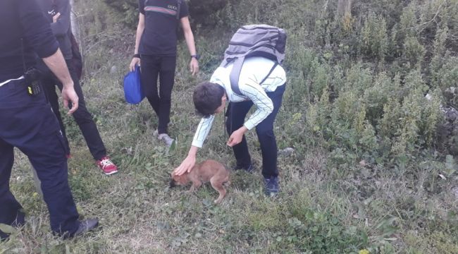 Kocaeli'nin Gölcük ilçesinde 4 metre yükseklikten dereye düşen yavru köpek itfaiye ekipleri tarafından kurtarıldı.