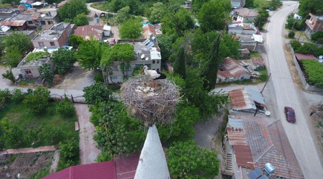 40 yıldır aynı caminin minaresine yuva yapıyorlar