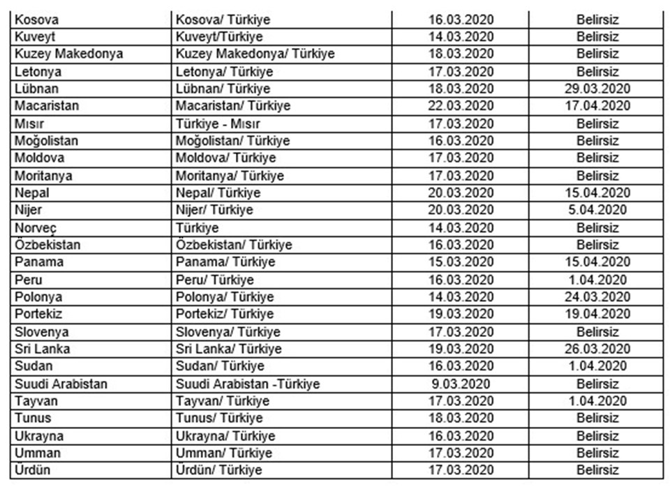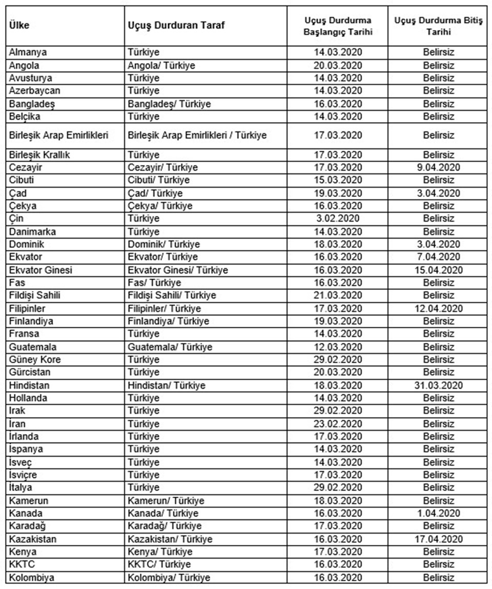 Ulaştırma ve Altyapı Bakanlığı, corona virüs (Covid-19) tedbirleri kapsamında 46 ülkeye daha uçuşların durdurulacağını duyurdu