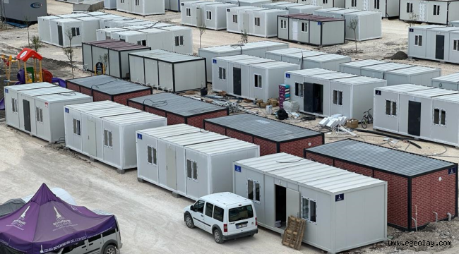 Depremzedelerin bayrama geçici yuvalarında girecekleri müjdesini veren İzmir Büyükşehir Belediye Başkanı Tunç Soyer, bölgede ihtiyaç kalmadığında, bir afet halinde kullanılmak üzere tüm konteynerler ve malzemelerin İzmir'e getirilerek envanterde tutulacağını söyledi.