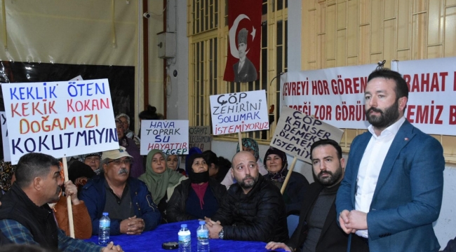 Menderes'te yaşayan 102 bin vatandaşın geleceğini düşündüklerini belirten AK Parti Menderes İlçe Başkanı Süleyman Artcı, ''Menderesimizin yarınlarına sahip çıkamayan, üç maymunu oynayan, halkının savunduğu bir gerçeğin arkasında dahi duramayan bir Belediye Başkanı olabilir ama biz daha ölmedik. Her ne şart ve koşulda olursa olsun, bu çöp tesisini Menderesimize yaptırmayacağız. Daha ÇED raporu sonuçları açıklanmamışken, adeta oldu bittiye getirircesine yaptığınız ihaleden anlaşılacağı üzere, birilerini uyutmaya çalışıyorsunuz. Ama biz uyumuyoruz. Dimdik ayaktayız. Menderesli hemşehrilerimiz her şeyin farkında. Uyuyan biri varsa o da Menderes Belediye Başkanı Mustafa Kayalar'dır. Türkiye'de kemse çiçekçiliğin yüzde 45'i, domatesin yüzde 40'ı Menderes'ten karşılanıyor. Örtü altı tarım arazisi ile hayvancılıksa önemli bir yer teşkil ediyor. Çöp tesisi yapmak için seçtikleri yer tarım alanı ve İzmir'in içme suyunu Menderes karşılıyor. Turizm için de önemli. Tesis için Menderes'in lokasyon olarak belirlenmesi doğru değil.'' dedi.