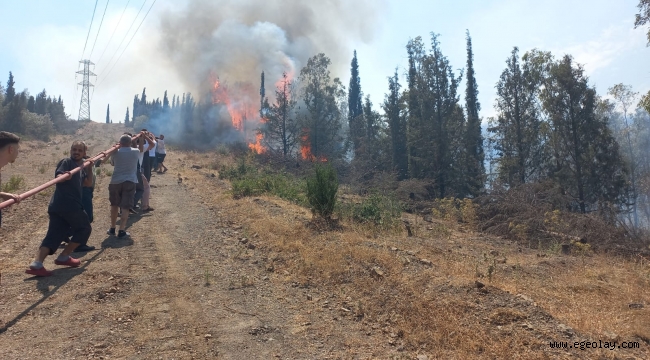 EGEOLAY/İzmir Büyükşehir Belediyesi’nin Akıllı İhbar Sistemi, Bornova’da çıkan orman yangınının kısa sürede fark edilmesini sağladı. İtfaiye ekipleri yangına müdahale ediyor.