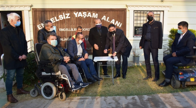 Konuşmalarının ardından Aliağa Kaymakamı Ömer Karaman, Aliağa Belediye Başkanı Serkan Acar, Aliağa Engelliler ve Rehabilitasyon Derneği Başkanvekili İbrahim Erdemir protokolü imzaladı.