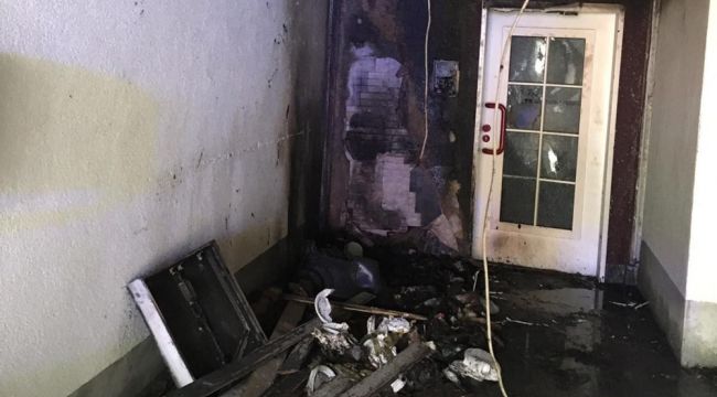 Caminin giriş kısmında çıkan yangına itfaiye ekipleri müdahale etti.