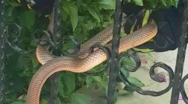 Kırklareli'nin Lüleburgaz ilçesinde bir apartmanın bahçe kapısındaki parmaklıklara dolanan yılan, itfaiye ekipleri tarafından kurtarıldı. Uzun uğraşlar sonucu bulunduğu yerden kurtarılan yılan doğaya salındı.