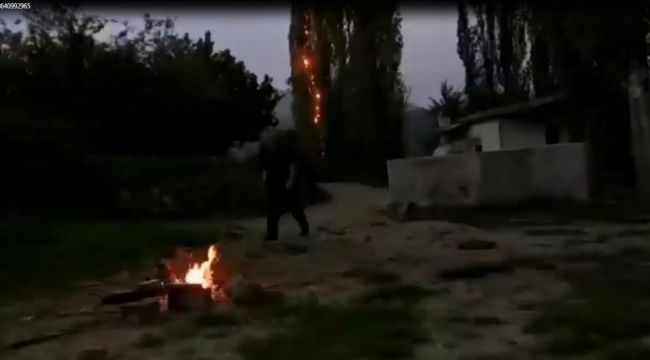 Pazarlar ilçesi Orhanlar köyünde bahçede iftar hazırlığı yapan ailenin 10 metre yakınına yıldırım düştü. Aile bireyleri olaydan kıl payı kurtulurken,düşen yıldırımın çıkardığı yangını vatandaşın cep telefonu kamerasına yansıdı.