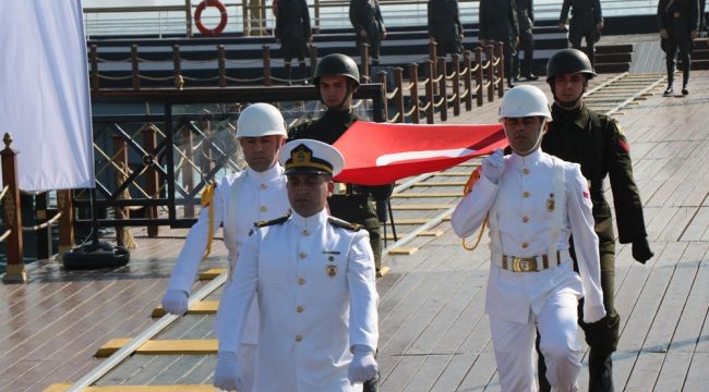 Atatürk'ü temsil eden bayrak karaya çıkarıldı
