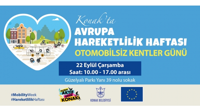 EGEOLAY/Konak Belediyesi 16-22 Eylül tarihleri arasında gerçekleştirilen Avrupa Hareketlilik Haftası’nda bu yıl da çeşitli etkinliklerle yer alacak. Dünya Otomobilsiz Kentler Günü’nde trafiğe kapatılacak olan Güzelyalı Parkı’nın yanındaki 39 Sokak’ta gün boyu spor, dans ve yetenek gösterileriyle yarışlar düzenlenecek.