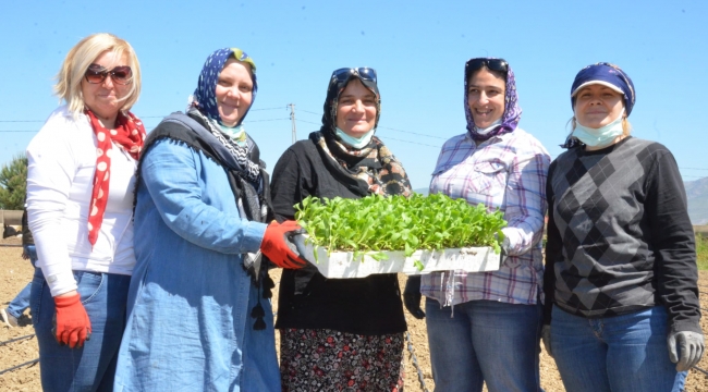 Kooperatif ortağı kadınlar tarafından Menemen'de gerçekleştirilen ilk dikime İzmir Tarım ve Orman İl Müdürlüğü'nden Koordinasyon ve Tarımsal Veriler Şube Müdürü İlke Kızıltoprak ile Menemen Tarım ve Orman İlçe Müdürü Fatih Çiçek de eşlik etti.
