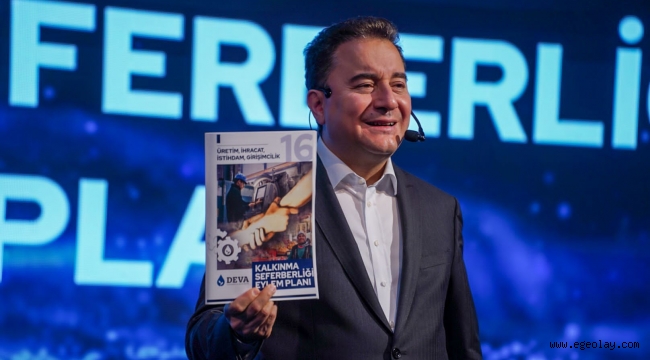 EGEOLAY/DEVA Partisi Kalkınma Seferberliği Planı’nı açıkladı, Genel Başkan Ali Babacan 10 hedef sıraladı. “Türkiye’yi iklimi güzel, insanı güzel, demokrasisi ve ekonomisi İsveç, Norveç gibi bir ülke yapmayı hedefliyoruz” diyen Babacan, “Başarılarımız Sayın Erdoğan’a emekliliğinde silmeyeceği tweetler attıracak. Bizi kutlayacağından hiç kuşkum yok” ifadelerini kullandı.