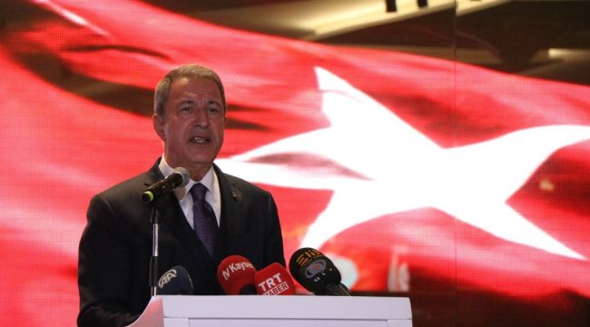 "1. Dünya Savaşı'nda parasını verdiğimiz gemiyi alamadık. 1974'te olmadık ambargolara maruz kaldık, 2011'e parasını verdiğimiz İHA'ların motor bakımını yaptıramadık" diyen Bakan Akar, "Bunun sonunda şuanda biz çok şükür İHA ihale edebilecek duruma geldik. Top, tank, gemi, helikopter yapıyoruz. Bunu yapan sadece kamu değil. Kamuyla beraber özel sektörün işbirliği. Bunun artması ve gelişmesi lazım. Bu coğrafyada bizim hayatta kalabilmemiz için bu konuları mutlaka çözmemiz lazım. Çünkü barış zamanında herkes sizinle dost, beraber çalışıyor. Fakat kriz ve savaş zamanında paranız olsa dahi istediğiniz silahı, aracı ve gereci alamayabilirsiniz. Dolayısıyla bu hayat memat meselesidir. Burada herhangi bir şeyi şansa bırakmamak lazım. Tüm müteşebbislerimizi bu konuda müteyakkız olup, elini taşın altına sokup bir şeyler yapmamız lazım. Savunma sanayi sadece ekonomik bir faaliyet değildir. Aynı zamanda ülkemizin ve milletimizin güvenliği için bir vatandaşlık görevidir. Dolayısıyla bu konuda sanayicilerimizin her türlü riski alarak ellerini taşın altına sokmasını bekliyoruz. Bu konuda Milli Savunma Bakanlığından ne bekleniyorsa arkadaşlarımız yapmaya hazırlar. Önünüzdeki her türlü engelleri aşmak için hep beraber omuz omuza savaşmak durumundayız. Etkin, yerli ve yenilikçi bir savunma sanayi ile bu coğrafyada ayakta kalabiliriz. Etrafımızda belirsizlikler, etrafımızdaki çatışmalar, siyasi ve askeri gelişmeler bizi her zamankinden güçlü olmaya itiyor. Türk Silahlı Kuvvetlerinin etkin ve caydırıcı olması gerekiyor. Buda sadece personelle mümkün değil, aynı zamanda savunma sanayi desteğiyle mümkündür. Paramız olsa sahi her şeyi almamız mümkün değil. Dolayısıyla bunun için yerlilik ve millilik çok büyük önem arz ediyor" diye konuştu.