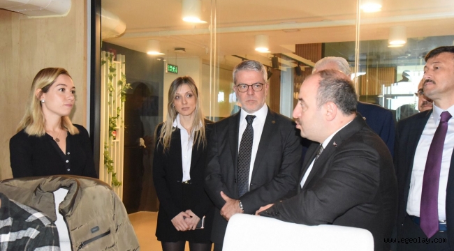 EGEOLAY/T.C. Sanayi ve Teknoloji Bakanı Mustafa Varank, İzmir’in Uluslararası İnovasyon ve Girişimcilik Kentine Dönüşümü vizyonu doğrultusunda İzmir Valiliği, İzmir Büyükşehir Belediyesi, İzmir Ticaret Odası, Ege Bölgesi Sanayi Odası, İzmir Ticaret Borsası, Ege İhracatçı Birlikleri, Ege Sanayicileri ve İş İnsanları Derneği ve Ege Genç İş İnsanları Derneği paydaşlığında kurulan İzQ Girişimcilik ve İnovasyon Merkezi’ni ziyaret etti.