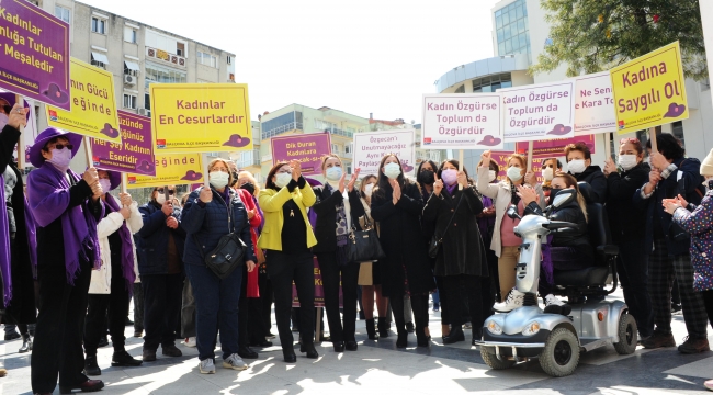 EGEOLAY/Türkiye’nin kadına yönelik her türlü şiddetle mücadeleye ilişkin standartlar getiren İstanbul Sözleşmesi’nden tek taraflı çekilme kararı İzmir Balçova’da protesto edildi.
