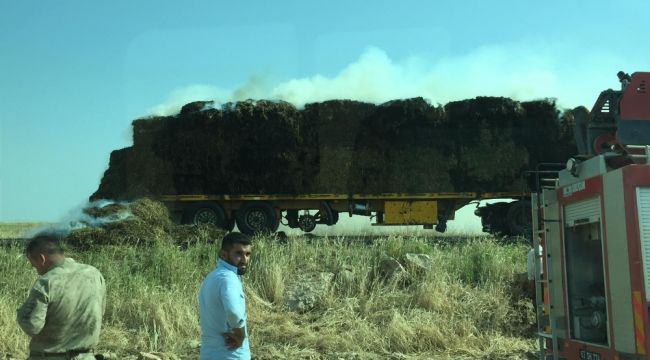 Alınan bilgiye göre, plakası ve sürücüsü belirlenemeyen ot balyası yüklü tır, Ceylanpınar Akçakale karayolun 20'nci kilometresinde aniden alev almaya başladı.