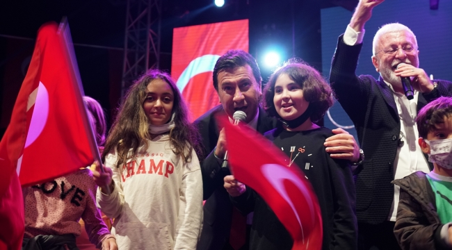 EGEOLAY/Cumhuriyetin ilan edilişinin 98. yılına özel 3 gün sürecek bir program hazırlayan Bodrum Belediyesi, Cumhuriyet Bayramı kutlamalarına devam ediyor. Programın ikinci gününde Onur Akın, müzikseverlere unutulmaz bir Cumhuriyet gecesi yaşattı. Geceye, Onur Akın ile Bodrum Belediye Başkanı Ahmet Aras’ın sahneye çıkan çocuklarla birlikte “Güzel Günler Göreceğiz” düeti damga vurdu.