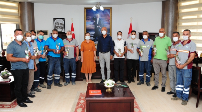 EGEOLAY/Balçova Belediye Başkanı Fatma Çalkaya, Muğla’daki yanın söndürme çalışmalarına katılan personeli ile bir araya geldi. Başkan Çalkaya alev savaşçılarına birer çam fidanı hediye ederek ikramiye ile ödüllendirdi.