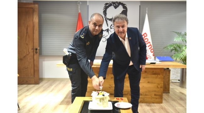 EGEOLAY/Türkal’ın yerine Bornova İlçe Müdürlüğü görevine atanan Osman Şahin Bornova Belediye Başkanı Dr. Mustafa İduğ’u ziyaret etti. Bornova’nın yeni Emniyet Müdürü’nü kestiği sürpriz pasta ile kutlayan Başkan İduğ, “İlçemize hoş geldiniz” dedi.