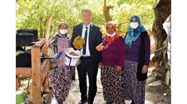 Tarlalarını gezerek, yetiştirdikleri ürünler hakkında bilgi alan Başkan Mustafa İduğ, kadın üreticilerin sofralarına konuk oldu, ikram edilen meyveleri yedi. Çiftçi Kadınlar Günü nedeniyle gerçekleşen ziyarette, kadın üreticilere sürpriz yaparak, çeşitli hediyeler verdi.