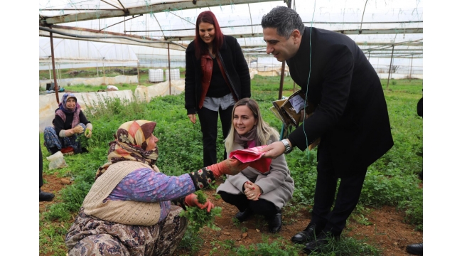 Belediye Başkanı Kayalar, Develi, Çileme, Sancaklı, Ataköy ve Değirmendere mahallelerinde bulunan seralarda emeğin gerçek temsilcisi üretici kadınlarla bir araya geldi.