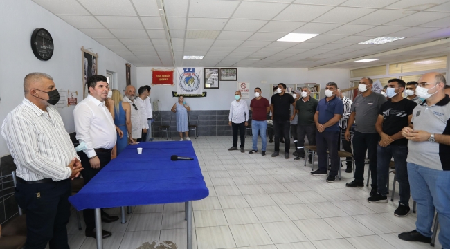 EGEOLAY/Buca Belediye Başkanı Erhan Kılıç, Kurban Bayramı vesilesiyle belediye personeli, meclis üyeleri ve muhtarlarla bayramlaştı. İlk bayramlaşma programını saha emekçileri ve şantiyelerden başlatan Başkan Kılıç, emekçilere özverili çalışmalarından dolayı teşekkür etti.