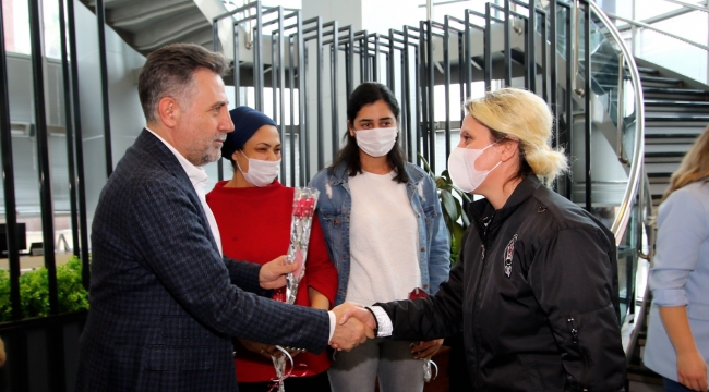 Başkan Sandal'dan kadın çalışanlara karanfil