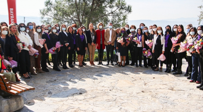 8 Mart'ın bir kutlamadan ziyade kadın haklarının, kadının siyasal ve sosyal yaşamda eşit haklarla mücadele etmesinin bir anma günü olduğunu hatırlatan CHP Bayraklı İlçe Başkanı Pınar Susmuş ise, "Toplumun yarısını oluşturan kadınların hakları ve her alanda var olma mücadelesinde hep birlikteyiz, birlikte daha güçlüyüz ve bu mücadelemizi hep birlikte sürdüreceğiz. Kadınlarımızın her biri ayrı zorluklarla mücadele veriyor. Ekonomik dar boğaz içinde boğulmuş Türkiye'de hepimiz büyük bir mücadelenin içinde yaşamımızı sürdürmeye çalışıyoruz. Bu nedenle kadınlarımız gücünün farkına varmalı, erkekler de kadınlara güç vermeli. İstanbul sözleşmesi yaşatır diyerek kadın haklarının, Atatürk ilke ve devrimlerinin mücadelesini sürdüreceğiz. Bu anlamda Dünya emekçi kadınlar gününüzü kutluyorum" diye kaydetti. Konuşmaların ardından kadınlara çiçek buketleri takdim edildi, hatıra fotoğrafı çektirildi.