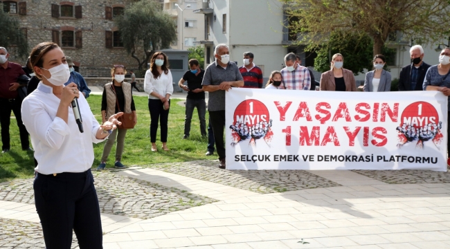 EGEOLAY/Selçuk Emek ve Demokrasi Platformu tarafından 1 Mayıs Emek ve Dayanışma Günü öncesinde İstasyon Meydanı’nda basın açıklaması düzenlendi.