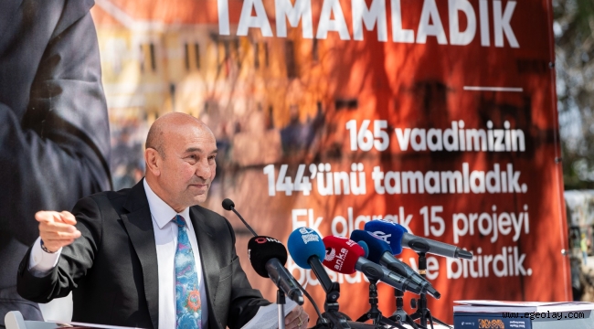 EGEOLAY/İzmir Büyükşehir Belediye Başkanı Tunç Soyer, 5 yıllık görev süresini düzenlediği basın toplantısı ile değerlendirdi. “Doğru bilinen yanlışları ve yanlış bilinen doğruları anlatmak istiyorum” diyerek detaylı açıklamalar yapan Başkan Soyer, “Benim vicdanım çok rahat. Kafayı yastığa koyduğumda huzurla uyuyacağım. Bu 5 yıl ne kadar çok çalıştığımı ben ve arkadaşlarım çok iyi biliyor” dedi.