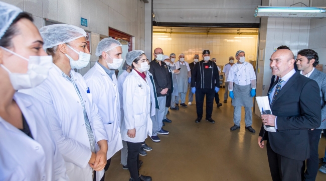İzmir Büyükşehir Belediyesi Aşevi’nin adeta fabrika gibi çalıştığını ifade eden Başkan Soyer, “Muazzam bir çalışma var burada. Arı kovanı gibi burası. Arkadaşlarımın her biriyle iftihar ediyorum çok zor bir iş. Günde yaklaşık 19 bin kişi için yemek çıkarıyorlar hakikatten ağır bir işleri var. 24 saat çalışıyorlar her birinin emeğine sağlık” dedi. Başkan Soyer, Ramazan dayanışmasını her ilçeye taşıyacaklarını dile getirek şöyle konuştu: “Ramazan ayı boyunca 350 mahalleye 200 bin kişilik, 9 Biz İzmir dayanışma noktasında da 300 bin kişilik iftar sofrası kuruyoruz. 40 bin gıda paketi dağıtıyoruz. Üniversiteli öğrencilerimiz için 60 bin kişilik iftar sofrası açıyoruz. İzmir’de ramazan ayı boyunca dayanışmayı her ilçeye taşıyacağız.”