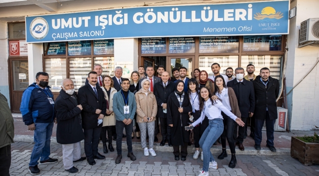 EGEOLAY/İzmir Büyükşehir Belediye Başkanı Tunç Soyer Menemen Umut Işığı Gönüllüleri Kütüphanesi’ni ziyaret etti. Başkan Soyer, “Bu memleketin genç insanlarının bu tür gönüllü çalışmalarına destek vermesinden oldukça gurur duydum” dedi.