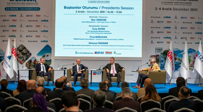 İzmir Büyükşehir Belediye Başkanı Tunç Soyer, Travel Turkey İzmir-15. Uluslararası Turizm Fuar ve Kongresi kapsamında yapılan Başkanlar Oturumu'na katıldı. Türkiye Seyahat Acentaları Birliği (TÜRSAB) Hukuk Başdanışmanı İlker Ünsever'in moderatörlüğünde yapılan oturuma Başkan Tunç Soyer ile birlikte TÜRSAB Yönetim Kurulu Başkanı Firuz Bağlıkaya ve İzmir Ticaret Odası Yönetim Kurulu Başkanı Mahmut Özgener katıldı. İzmir Büyükşehir Belediye Başkanı Tunç Soyer, “Çok heyecan verici bir buluşma... Pandeminin başından beri ilk kez yüz yüze, göz göze bir araya gelebildik. Alıcısı, satıcısı, pazarlayıcısı sektörün tüm dinamikleri... İnsanların yüzü gülüyor. Sektör bu buluşmadan çok memnun. Bu çok kıymetli. Travel Turkey İzmir Fuarı, dünyada bu çapta pandemiden sonra düzenlenmiş ilk turizm fuarı. 2022 için hem Türkiye hem İzmir özelinde hepimiz için son derece heyecan verici bir başlangıç” dedi.