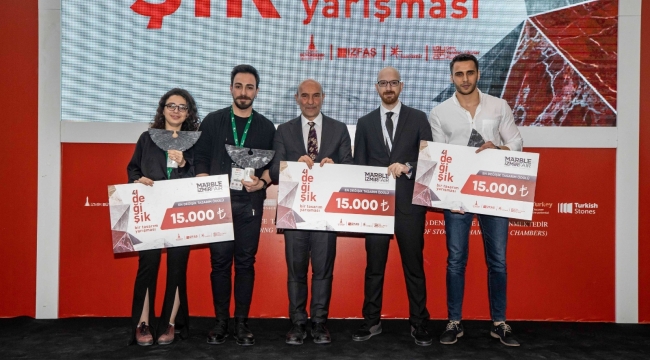 İzmir Büyükşehir Belediyesi ev sahipliğinde İZFAŞ tarafından düzenlenen Marble İzmir-27. Uluslararası Doğaltaş ve Teknolojileri Fuarı kapsamındaki 4. Değişik Doğaltaş Tasarım Yarışması'nın kazananları belli oldu. Fuar İzmir'deki ödül törenine İzmir Büyükşehir Belediye Başkanı Tunç Soyer, İzmir Büyükşehir Belediyesi İkinci Başkan Vekili Prof. Dr. Suat Çağlayan, Ege Maden İhracatçıları Birliği Yönetim Kurulu Başkanı Mevlüt Kaya, İscehisar Belediye Başkanı Ahmet Şahin, İZFAŞ Genel Müdürü Canan Karaosmanoğlu Alıcı, jüri üyeleri, tasarımcılar ve sektör profesyonelleri katıldı.