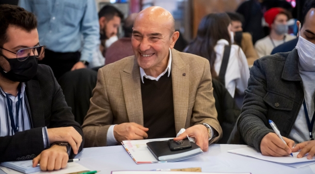 Başkan Soyer konuşmasının ardından gençler için oluşturulan altı ayrı masada tek tek gençlerin isteklerini dinledi ve not aldı.