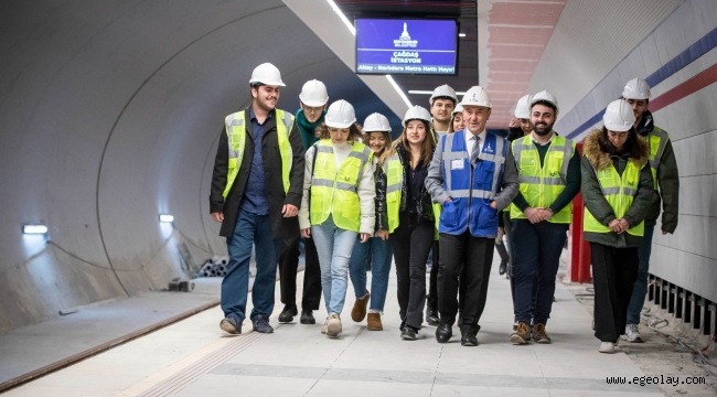 EGEOLAY/İzmir Büyükşehir Belediye Başkanı Tunç Soyer, inşaat çalışmalarında sona gelinen ve 2023 yılında açılması planlanan Fahrettin Altay-Narlıdere Metrosu’nda üniversite öğrencileri ile incelemelerde bulundu. Çağdaş istasyonunda gençlerle sohbet eden Başkan Tunç Soyer, “İzmir’i demir ağlarla öreceğimizi söylemiştik, örüyoruz” dedi.