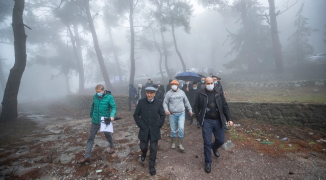 Başkan Soyer daha sonra Yamanlar Dağı’nda orman içinde, sanatoryum olarak kullanılan ancak yıllar önce kaderine terk edilen tesislerde inceleme yaptı. Asırlık çınarlar ve dev çam ağaçlarının arasında, Tarım ve Orman Bakanlığı’na ait tesislerin bulunduğu bölgenin doğa harikası olduğunu, bu şekilde kaderine terk edilmesine üzüldüğünü belirten Başkan Soyer, burasının da İzmirlinin kullanımına nasıl sunulabileceğinin araştırılmasını istedi.