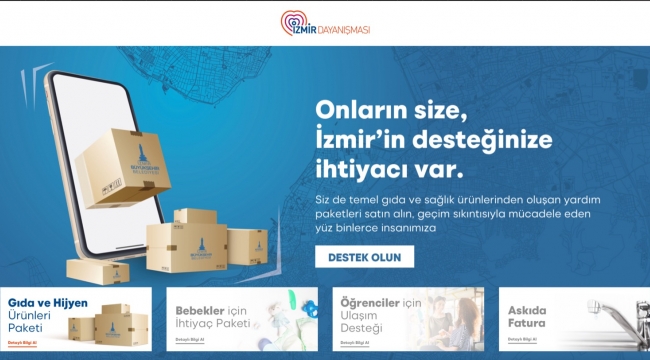 İzmir Dayanışması’na katılmak için bizizmir.com web sitesine girerek Halkın Bakkalı üzerinden 185 liralık “Gıda Paketi” ve 65 liralık “Hijyen Paketi”nden istenildiği miktarda satın alınabiliyor. Gıda Paketi bir litre ayçiçeği yağı, birer kilo pirinç, bulgur, nohut, un, çay ve şeker, 500 gr siyah zeytin, 500 gramlık iki paket makarna, 750 gr tuz, 65 gramlık iki paket hazır çorbadan oluşuyor. Hijyen Paketi’nde ise bir diş fırçası, 50 ml diş macunu, 7’li hijyenik ped, 5’li 60 gr sabun, 50 ml kolonya, 500 ml şampuan, 20 cc el kremi bulunuyor. İzmir Büyükşehir Belediyesi yardım için başvurmuş, gerçekten desteğe ihtiyacı olan ve sosyal incelemesi tamamlanmış ailelere bu paketleri ulaştıracak. Önceki dayanışma kampanyalarında olduğu gibi veren el yine alan eli görmeyecek.