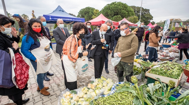 Üreticilerle sohbet eden Başkan Soyer ve eşi Neptün Soyer, stantları dolaşırken üretim yöntemleri hakkında bilgi aldı ve sağlıklı gıdanın üretici pazarlarından geçtiği vurgusunu yaptı. Başkan Soyer, İzmir Büyükşehir Belediyesi, Halkın Bakkalı, İzmir Köy Koop Birliği, Slow Food, Türkiye Aşçılar Federasyonu ve İzmir Aşçılar Derneği’nin koordinasyonunda “Yerliyse Yeriz” sloganıyla kurulan stantta ikram edilen tarhana çorbasından da içti. Buğdayından sebzesine yerli tohumlardan elde edilen ürünlerle yapılan ve ikram olarak sunulan tarhana, pazar ziyaretçilerinin de uğrak noktası oldu.
