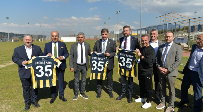 Tugay ziyaretin sonunda kendisine hediye edilen ve üzerinde İzmir'in plakası ile adının yer aldığı forma ile sahada poz verdi.