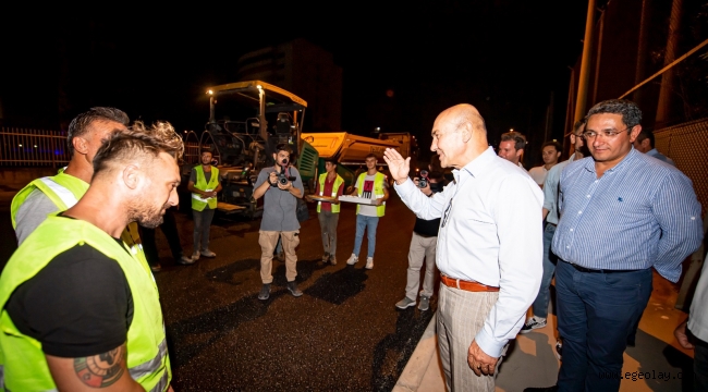 Başkan Tunç Soyer asfalt serim çalışmalarını inceledi
