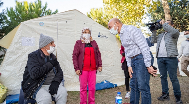 Başkan Tunç Soyer, havaların soğuması nedeniyle ayakkabı, kaban gibi talepleri olanların ihtiyaçlarının da anında giderilmesi için belediye yetkililerine talimat verdi. Soyer, çadır alanlarında görev yapan İzmir Büyükşehir Belediyesi personeli ile gönüllü olarak çalışan yurttaşlara da teşekkür etti.