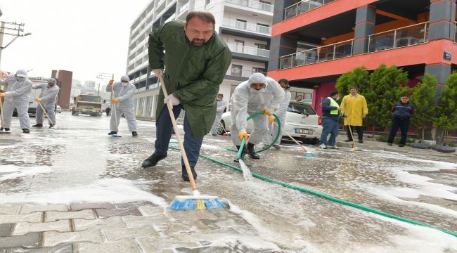 Başkan Utku Gümrükçü sokakları yıkadı