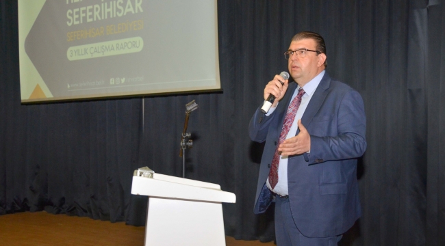 EGEOLAY/Geçmişten günümüze yaşayan tarihi, doğası, denizi, verimli tarım alanları, turizmi ve yatırım olanakları ile Türkiye’nin marka kenti olan Seferihisar’da Başkan İsmail Yetişkin 3 yıllık değerlendirme toplantısında bugüne kadar yapılan çalışmaları ve gelecekte yapılacak projeleri Seferihisarlılar ile paylaştı.