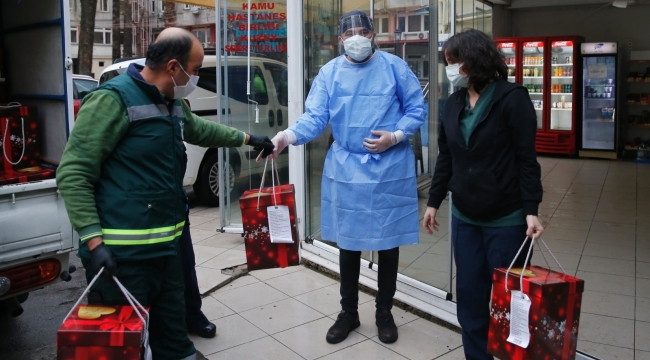 EGEOLAY/Konak Belediye Başkanı Abdül Batur, yeni yıla pandemi nöbetinde giren kahraman sağlık çalışanlarını unutmadı. Hazırlanan yılbaşı paketleri, yılbaşı gecesinde pandemi birimlerinde nöbet tutan ve yeni yılı görev başında karşılayan sağlık çalışanlarına ulaştırıldı.