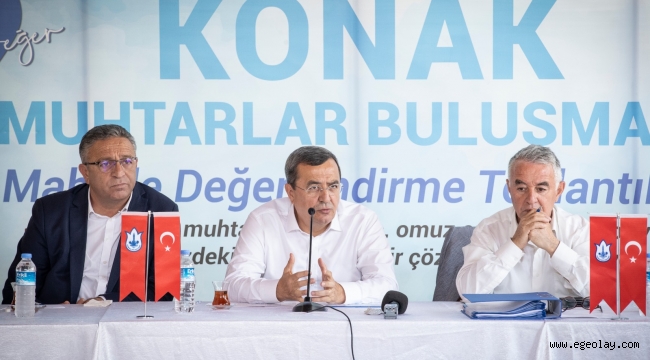 EGEOLAY/Konaklı muhtarlarla bir araya gelen Başkan Batur, hem muhtarların taleplerini dinledi, hem de belediyenin hizmetlerini aktardı. Kentsel dönüşüme vurgu yapan Başkan Batur, Gültepe’nin yenilenen planlarının meslek odaları ve ilgili kurumlarla paylaşıldığını, değişiklik talebi ve itirazlar için son günü 15 Temmuz olarak belirlediklerini söyledi. Başkan Batur, “Biz, Gültepe planları ile ilgili hazırlıklarımızı tamamladık, planları meslek odalarına anlattık, ilgili kurumlarla paylaştık. 15 Temmuz tarihine kadar şikayet ve itirazları bize iletmelerini istedik. Henüz bir itiraz gelmedi. Biz, Gültepe’nin kentsel dönüşümünden asla vazgeçmedik, kentsel dönüşümde kararlıyız” dedi.