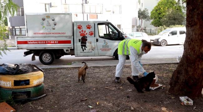 EGEOLAY/Bayraklı Belediyesi, sokağa çıkma yasağı süresince sokak hayvanlarının aç kalmaması için ilçenin çeşitli noktalarına mama ve su bırakıyor.
