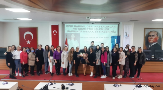 EGEOLAY/Bayraklı Belediyesi, İzmir Tınaztepe Üniversitesi Özel Galen Hastanesi ile yapılan iş birliği kapsamında personellere yönelik dermatoloji semineri düzenledi. Etkinlikte personele cilt hastalıkları, kanser türleri, tedavi yöntemleri ile bakım ve kozmetik işlemler gibi konularda bilgiler verildi.