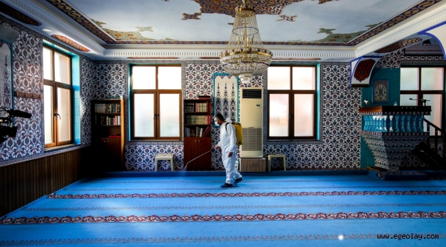Bayraklı'da ibadethaneler dezenfekte ediliyor