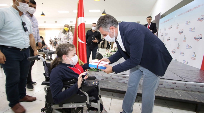 Başkan Sandal konuşmanın ardından meclis üyeleri ve belediye başkan yardımcılarıyla birlikte öğrencilere tablet ve kırtasiye setlerini dağıttı.