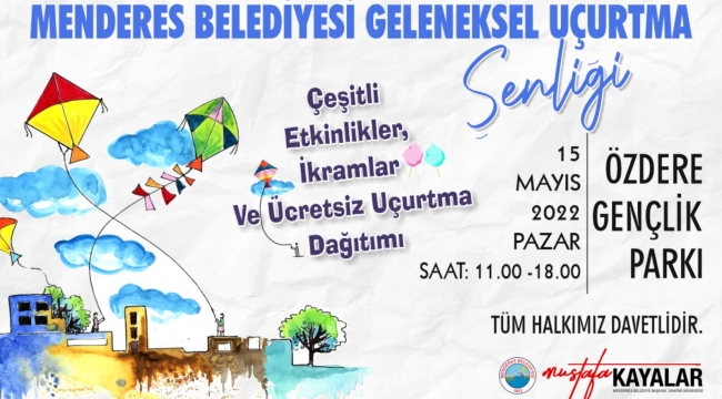 EGEOLAY/İzmir Menderes’te geleneksel hale gelen uçurtma şenliği 15 Mayıs Pazar günü Özdere Orta Mahalle’de yapılacak.