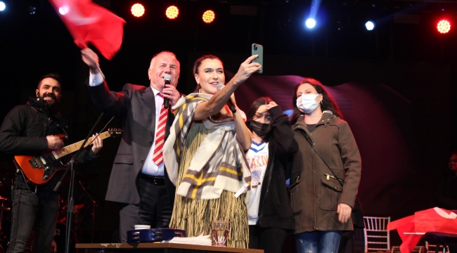 Rekreasyon Alanı’nda son bulan yürüyüşün ardından konser programıyla devam eden Cumhuriyet Bayramı kutlamalarında ünlü sanatçı Şevval Sam en sevilen şarkılarını hayranlarıyla beraber seslendirdi. Konserden önce coşkulu kalabalığa seslenen Başkan Karakayalı, “Cumhuriyet Bayramımızı bu yıl da her zamanki gibi coşkuyla, büyük bir gururla kutluyoruz. Bu güzel kalabalıkla birlikte her zaman Cumhuriyetimize sahip çıkacağımıza söz veriyoruz. Büyük önderimiz Gazi Mustafa Kemal Atatürk başta olmak üzere; tüm kahramanlarımızı sonsuz minnet, saygı ve sevgiyle anıyoruz. Cumhuriyet Bayramımız kutlu olsun” dedi. Karakayalı’nın konuşmasının ardından sahnede yerini alan ünlü sanatçı Sam, Rekreasyon Alanı’nda gerçekleştirdiği sahne performansı ve sevilen şarkılarıyla binlerce vatandaşa unutulmaz bir gece yaşattı. Başkan Rıdvan Karakayalı, Şevval Sam’a çiçek takdim ederek teşekkür etti. Gecenin sonunda Başkan Karakayalı ve ünlü sanatçı Şevval Sam İzmir Marşı’nıbirlikte seslendirdi.